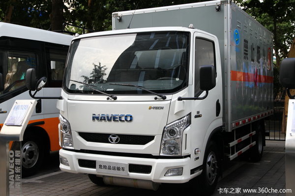 在南京依维柯新车型的展示现场,我们看到了由南维柯超越系列C300底盘改装的民用爆炸品运输车。