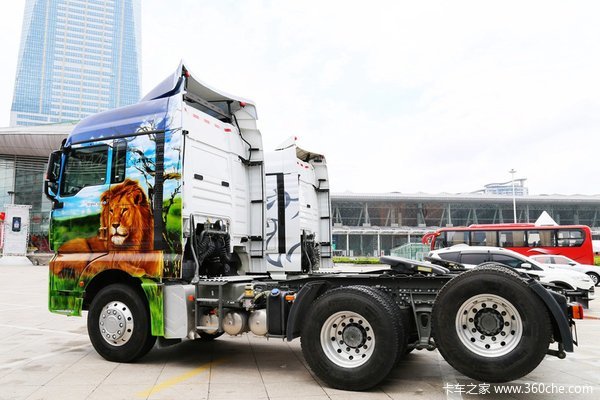 这种形式具有与6x4相同的承载吨位,以前多见于进口牵引车。国产车中,现在比较为人熟知的是近期汕德卡互动式路演的那款彩绘版 SITRAK C7H重卡。这种车型具有等同于6x4车型的承载能力,但维护保养成本却又接近4x2牵引车的水平,再加上其他一些优势使得这种车型在高效标载物流领域有着明显的优势,目前国内陕汽等厂家也开始陆续推出这种后提升6x2车型用于高速物流等领域。