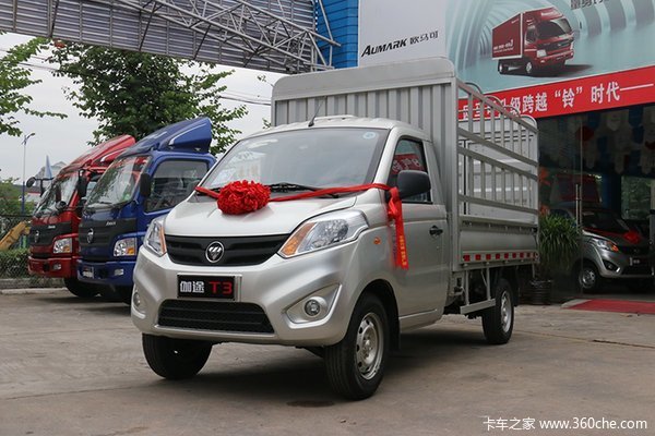 【卡车之家 原创】微卡一直受广大用户的关注,它们的体型比轻卡要小一些,排量也比较小,一般是汽油发动机。这种车一般用于中短途蔬菜水果批发之类的。最近,小编在广州市物建实业有限公司见到了一辆福田推出的一款微卡产品,伽途T3。这款车可以多种上装,此次实拍车是仓栅式,经销商给出的包牌价为3.83万元。
