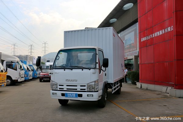 这款100P在外观方面最明显的就是改用了竖式大灯,采用的中网使其看起来更贴近五十铃卡车的家族脸谱。前脸的“ELF”和“ISUZU”更是代表着身份的象征,和600P相比起来风格则更加简单直观。
