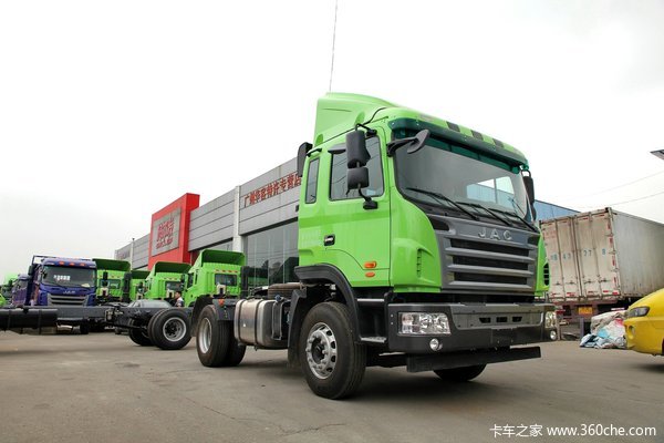 这款江淮A系列格尔发港口牵引车采用宽体的半高顶驾驶室,更加宽敞的驾驶室有助于在舒适性方面会有所提升。在造型方面延续了格尔发系列产品的U型前脸设计,用户定制的绿色涂装颜色,表面使其看起来更加节能和环保。