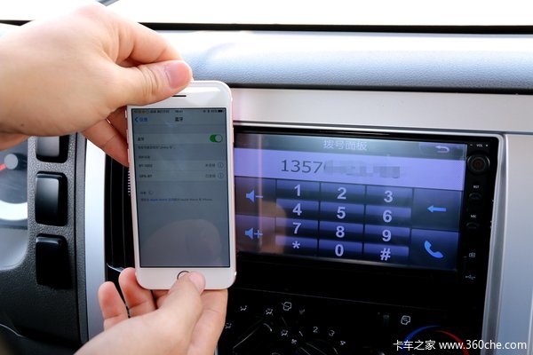 当连接上蓝牙以后,除了可以接、打电话,还有一个功能就是可以播放音乐。当手机与显示屏匹配成功以后屏幕会有所显示,司机现在就可以直接在手机上播放音乐,也可以在屏幕上进行切换音乐,但是屏幕不能够与手机屏幕进行同步、这点估计是该车显示屏并不具备这种功能。除了手机蓝牙播放,旁边还设有SD卡插口,司机可买张内存卡下载音乐、在休闲时也可以在这里观看电影,听听音乐,很是惬意。不过该车并没有配备多功能方向盘,在对音乐的声音加减、暂停还是需要去显示屏里面操作,这点相对来说还是有点不太方便。
