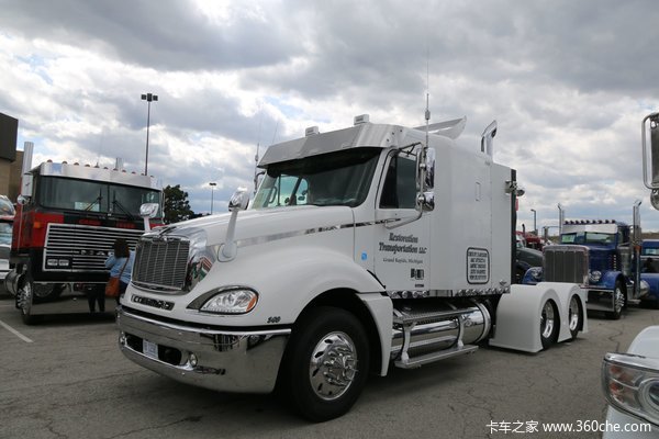 【卡车之家 原创】车辆改装是美国卡车文化不可或缺的一部分,在车辆上面彰显自己的个性是每个卡车司机都会做的事情。最近卡车之家编辑在参加美国中部车展时,拍到的一台白色福莱纳长头牵引车,简洁的改装风格和门徽上喷的运输公司吸引了我们。