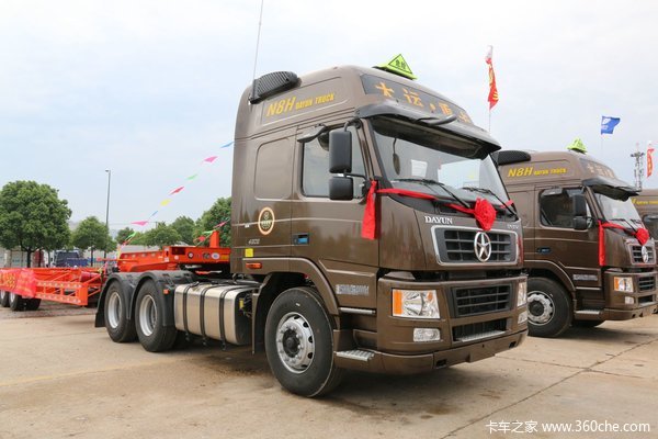 大运N8H 6X4车型搭载的是潍柴WP12.430E40发动机,相比之前10L发动机无论在扭矩、经济转速上都有着明显的提升,最大扭矩2060牛米(1000-1400rpm)动力更足,爬坡、超车能力更强。