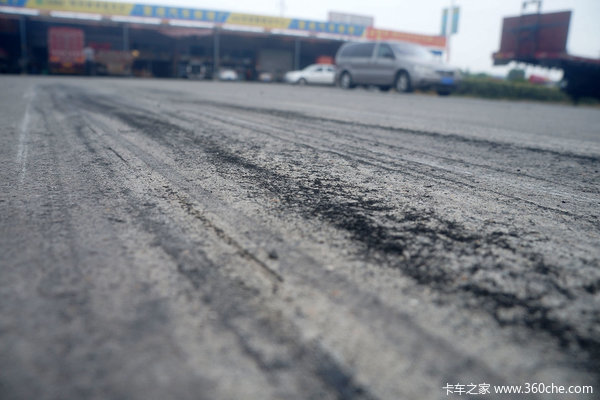 地上的“黑印”就是轮胎在与地面直接摩擦之后的产物,虽然测试时都将刹车踩到底,但是安装ABS后的挂车刹车痕迹要轻很多,并没有明显的“黑印”。下面就让我们近距离看看这个“黑印”到底是什么。