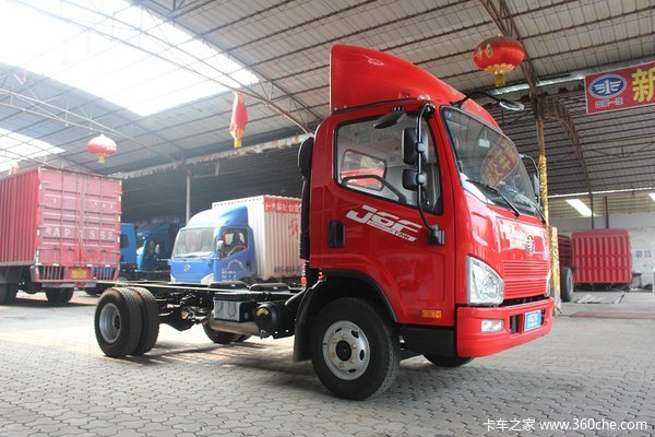 J6F整车尺寸为5995x2470x3310mm,可装配车厢尺为4210x2400x2300mm,车辆轴距为3300mm。