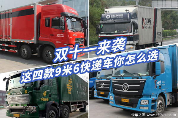 【卡车之家 原创】在上一篇文章《双十一巡展东风篇 9米6最好卖已被抢空》中我们发现,在这个双十一购车热潮中,最受欢迎的车型是9米6的厢式载货车。既然这种车型这么热销,那么今天我们就拉出4款9米6的快递车做一个对比,帮想买车的你出个主意。