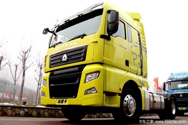 重汽440马力发动机:这款C7H搭载中国重汽MC11.4-50发动机,排量10.5L,满足国五排放标准,最大可输出440马力,在发动机转速为1000-1400转时,输出最大扭矩2100N.m。
