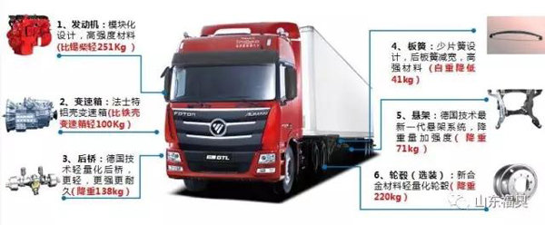 欧曼GTL 2017款牵引车作为福田戴姆勒的全新一代产品,其在轻量化升级方面也是下足了功夫。据介绍,这款车型的轻量化主要体现在4个方面: