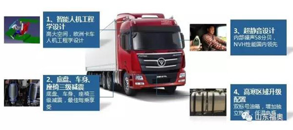 欧曼GTL 2017款整车采用底盘、车身、座椅三级减震,提升司机的驾乘体验;领先的NVH性能,独享私密空间,内部噪声58分贝,据说仅相当于洗衣机工作的声音;针对北方、西北区域,欧曼GTL 2017款牵引车采用双标号油箱,增加独立热源,换装大容量低温电瓶。