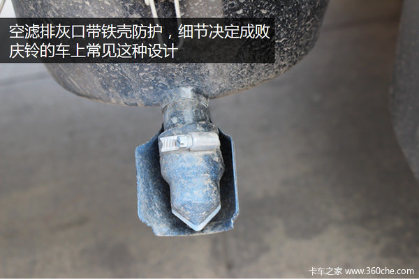空滤排灰口带铁壳防护装置,很适合中国的路况。大部分车都没有这个设计,我在庆铃的车见到过。