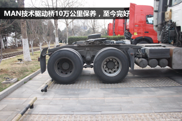 轻量化的抛物线钢板后悬挂简单又可靠,MAN技术双联驱动桥不仅轮毂单元免维护,带有齿轮油过滤装置的主减速器可实现十万公里保养。一百万公里过后,这对后桥依然完好。