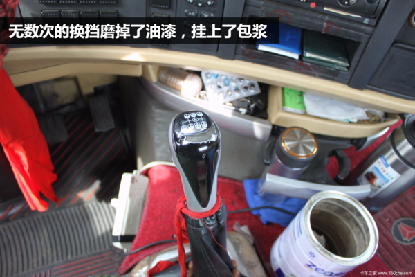 百万公里一路走下来,一千多个日日夜夜无法记清路上都发生过什么,但是无数次的换挡操作,将印记深深地刻在了档杆手球上,油漆磨掉之后已经闪闪发亮。