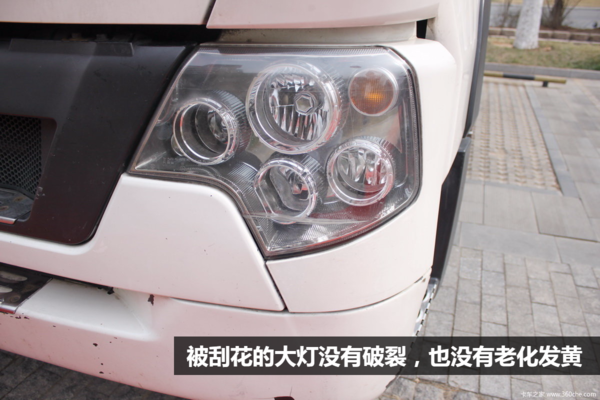一百万公里的征程中,在左前大灯上留下了一道长长的划痕,但是灯罩并没破裂,也并没有发黄和老化,可见零部件的品质。