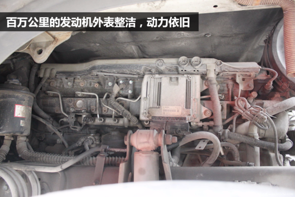 一百万公里过后的MC11曼技术发动机外表,除了浮灰可以说连个油星都没有。当时重汽保守地推出六万公里换油长保养周期,马强一直严格遵守五万到六万公里之间保养,使用正品机油和滤芯。