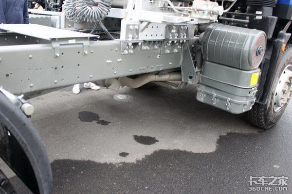 那么车架两侧的空间都用来做什么了呢,我们来看一下下面两张图,LNG版6X4牵引车的车架原本安装油箱的位置几乎完全荒废,除了这个空气滤清器。