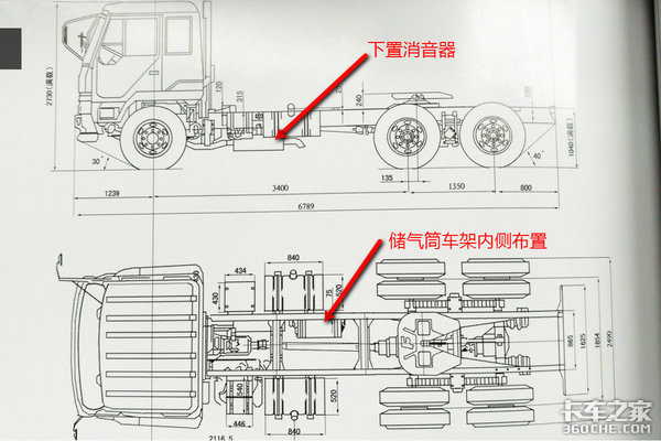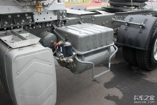 储气筒采用模块化设计无论是维修便利性还是零部件通用性上来说都有优势,但是安装位只能非车架外不可吗?显然也不是,早期的解放牵引车储气筒都是布置在车架内部的,所以储气筒也是可以给气瓶让位的。