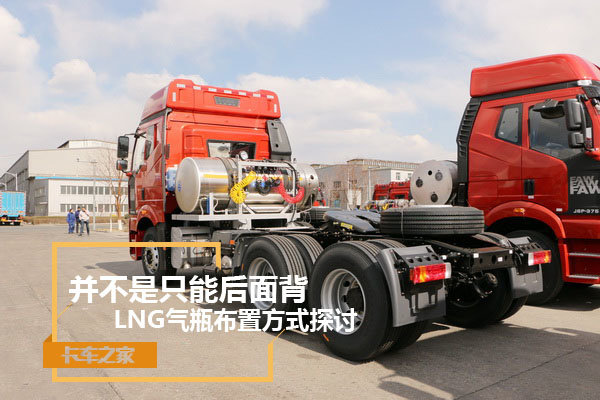 仔细观察路上的LNG牵引车不难发现,这些车和柴油车外观上的区别似乎只有把油箱换成了气瓶,装在了驾驶室后面,这样一来牵引车的保命绝技后移大法就不灵了,这一点确实让人难以接受,从这个角度考虑,LNG气瓶能否从驾驶室后面移走呢。