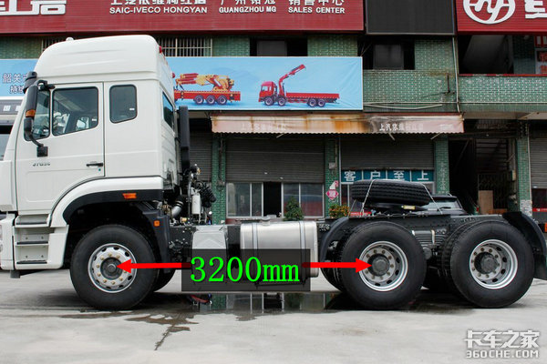 实际上,气瓶驾驶室后方布置的LNG牵引车,为了保证主挂车间距,车身都经过了一定程度的加长,以豪瀚J7G牵引车为例,柴油版的J7G牵引车轴距为3200+1400mm,而LNG版的J7G牵引车轴距为3825+1350mm,增加了足有600多毫米,这样一来一、二桥中间车架两侧的空间长度同步增加。