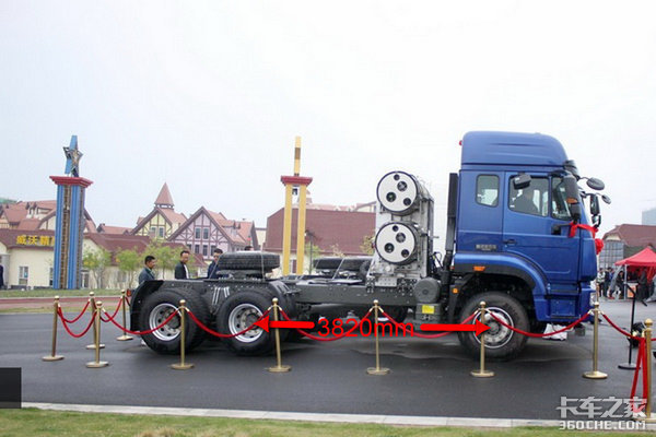 综上所述,加长了轴距的LNG牵引车底盘,车架两侧至少能布置两个500L的LNG钢瓶(长x直径=2145x650mm),即使是前宽后窄的梯形车架,前段外宽也不过一米左右,两侧安装宽度均能接近800mm,常规的450L、500L气瓶布置毫无压力。这样的双气瓶配置续航能力大概能在1000公里左右,而3820+1400轴距的底盘,一、二桥轮胎间的距离大约在2.8米左右,气瓶还有加长的余地,或者说3200轴距的柴油版底盘,也有希望布置下两个500L左右的气瓶。。