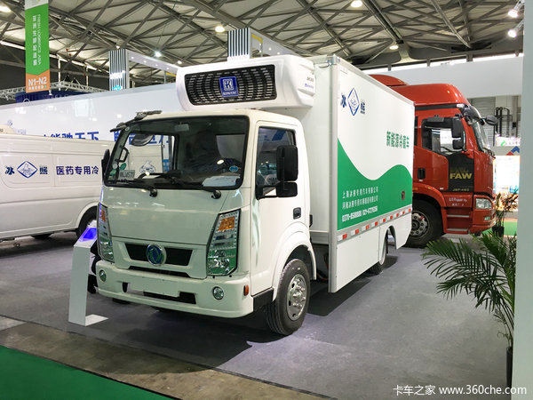 【卡车之家 原创】受去年北方雾霭天气的影响,新能源物流车又一次成了大家讨论的焦点,今年很多城市更是出台了促进电动物流车推广的新政策。2017年5月17-19日,在上海举办的“亚洲生鲜荟”上,河南冰熊就展出了一款电动冷藏轻卡。该车作为一款4米2轻卡,配有两组电池总重690kg,整车自重达4900kg,在冷机运作的情况下,续航里程为250km。