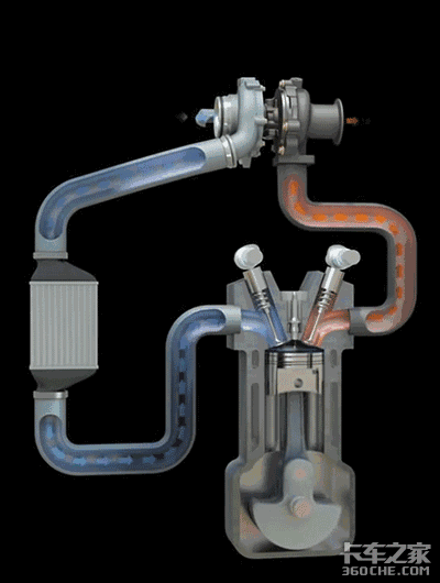 卡车上配备的几乎都是废气涡轮增压器,简单的说,它就是一个空气压缩机,它是由发动机燃烧产生的高温高压废气推动涡轮,再推动同轴安装的压缩叶轮,将压缩后的空气送入汽缸,已达到增大进气量使燃烧更充分,从而提高发动机的功率及扭矩,同时也能降低排放的目的。