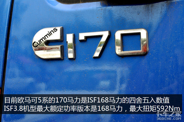 由于欧马可标配福田康明斯的发动机,所以欧马可5系最大只能做到170马力。将来有了ISF4.5之后,欧马可就可以有更大动力的版本。