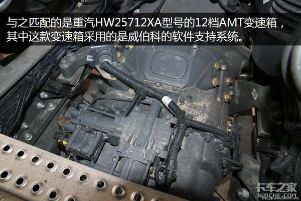这款C7H匹配的AMT变速箱是重汽与WABCO合作研发的一款变速箱,WABCO提供了控制软件,而重汽则负责硬件开发,所以这款变速箱上带有WABCO的标识。