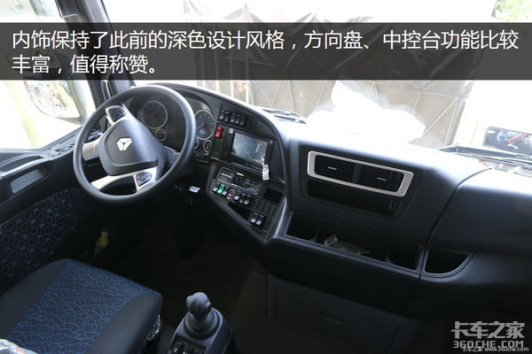 由于该车采用的是高顶平地板驾驶室,所以在空间方面表现出色。另外,中控台的功能较多,比如配备有多媒体系统、中国重汽车队管理系统、ABS、ASR功能按扭等等。