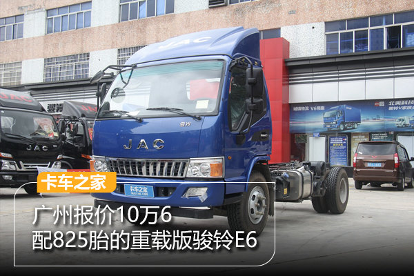 【卡车之家 原创】近日,在骏铃经销商广州坤厚汽车贸易有限公司的店内,我实地拍摄了一台骏铃E6重载版的蓝牌轻卡,这款蓝牌轻卡为了满足用户重载的需求,做了不少变化,其中就有直通式的加宽大梁,825的钢丝胎和全新的底盘布局,裸车报价10万6千,仅比标准版多了3千元。