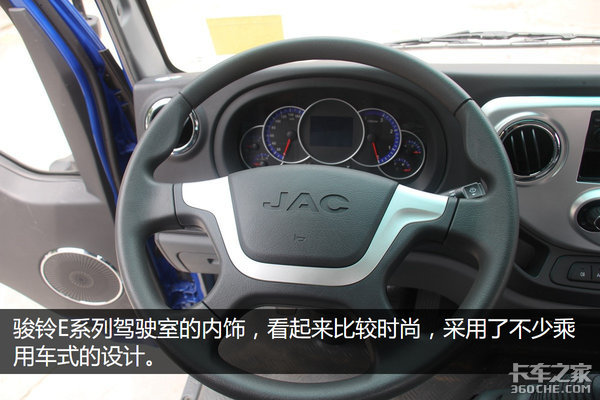 骏铃E系列驾驶室的内饰,在我看来,还是比较时尚的,采用了不少乘用车式的设计。