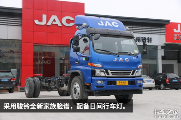 2016年下旬,江淮全新骏铃V系列全国上市,车型涵盖城市运输的蓝牌轻卡至黄牌中卡,尺寸最长的是针对城际中长途运输市场推出的骏铃V9,厢长为分为6米8和7米7。