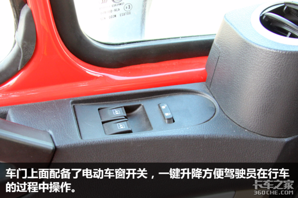驾驶室内整体的风格以简约为主,环绕式的中控台方便实用,车门上设置了电动车窗开关,方便驾驶员操作。虽然驾驶室高度降低了,但在舒适性方面并没有打折,主驾驶位置采用的气囊减震座椅,可有效减轻驾驶员的驾驶疲劳感。另外,用来安放杂物的抽屉及烟灰缸的设计也非常人性化。