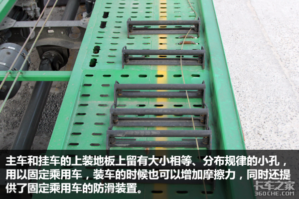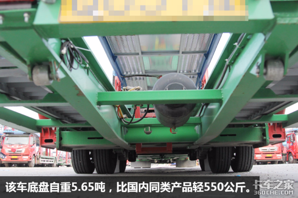 该车底盘自重5.65吨,比国内同类产品轻550公斤。底盘越轻,承载越大,可运输不同型号乘用车范围也越广。