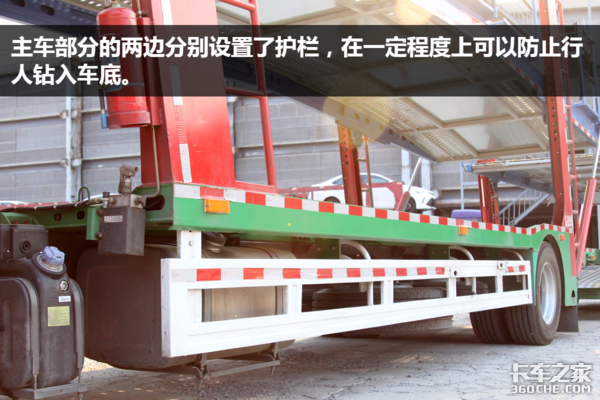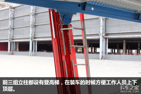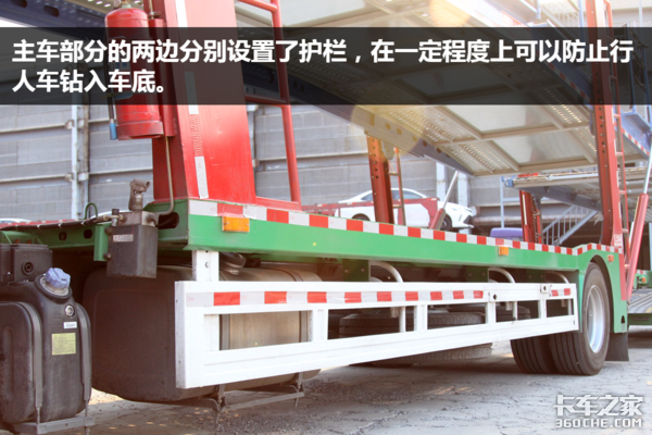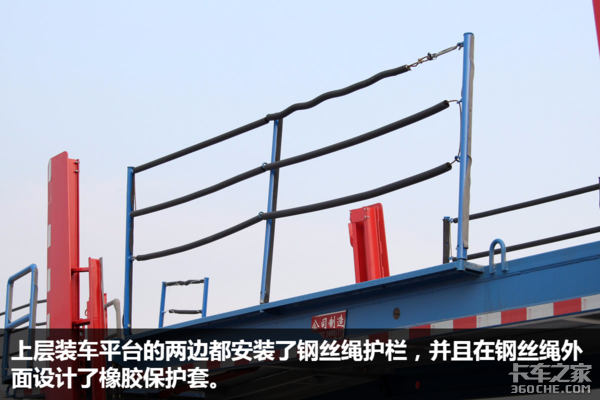 在车厢的上层装车平台的两边都安装了钢丝绳护栏,并且在钢丝绳外面设计了橡胶保护套,不仅可以有效保护装卸车人员的安全,而且还能够防止打开乘用车门的时候,剐蹭到护栏造成损坏,这些细节的设计真的非常用心。