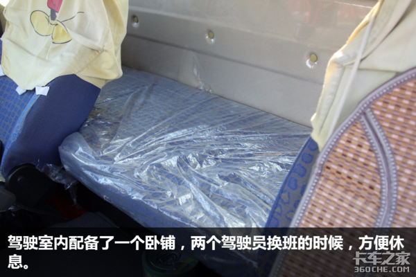 因为低顶驾驶室的关系,所以在室内只配备了一个卧铺,宽度达到了600毫米,一个人睡在上面完全没问题,两个驾驶员换班的时候,方便休息。