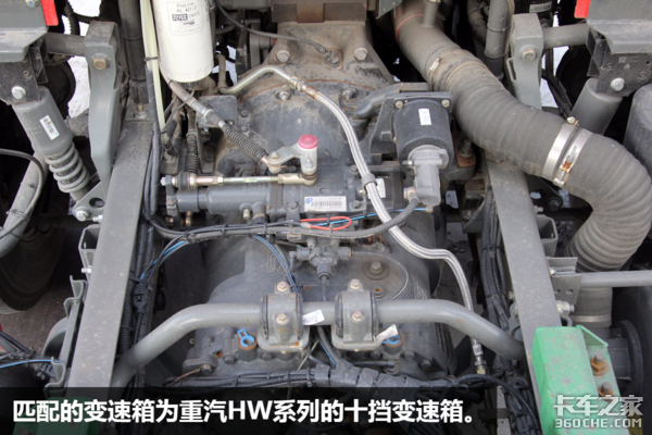 动力方面,该车搭载的是德国曼技术MC07系列发动机,排量为6.87升,输出功率为340马力,在1200-1800rpm的转速区间可以爆发出1250N.m的最大扭矩。结合SCR的后处理技术,满足国五排放法规要求。变速箱为型号为HW系列的十挡变速箱。