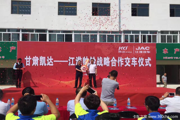 2017年7月18日上午,“甘肃凯达物流——江淮帅铃战略合作”首批采购车辆交车仪式在兰州市定远镇民丰冷链物流园隆重举行,交付的车型为江淮商用车的战略产品———江淮帅铃。安徽江淮汽车是一家集商用车、乘用车及动力总成研发、制造、销售和服务于一体的综合型汽车厂商。而轻卡是江淮汽车的优势核心业务,也是江淮汽车发展壮大的基石。江淮帅铃作为江淮轻卡的高端王牌产品之一,是江淮轻卡的中坚力量,在经过多年的市场历练下,已经成为中国中高端轻卡第一品牌。