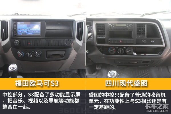轿车化内饰是这一两年在轻卡内饰上用得比较多的词,的确,现在市场上的中高端轻卡的内饰多少是参考了目前乘用车的内饰,在舒适性上有了长足的进步,那么作为合资高端轻卡的盛图与国内高端轻卡欧马可S3在内饰方面有何不同呢?