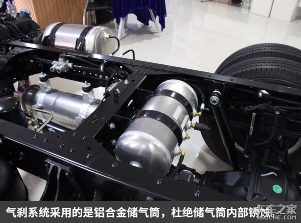这里就要提一下气刹4.0技术,帅铃延续江淮五十年气制动产品的研发生产经验,结合新技术进一步创新提升,升级为气刹4.0版本,主要升级了克诺尔ABS系统、铝合金储气筒、快插结构管路以及标配管路干燥器,行车更安全。