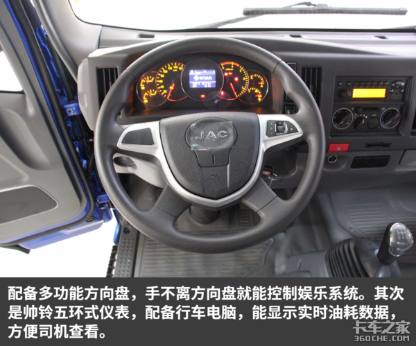 在内饰方面,帅铃一直都不会令人失望,标配了四幅多功能方向盘、智能仪表(带行车电脑)、美国江森座椅、电动门窗、中控锁(双折叠钥匙)等一系列舒适配置,给司机一个舒服的驾乘空间。