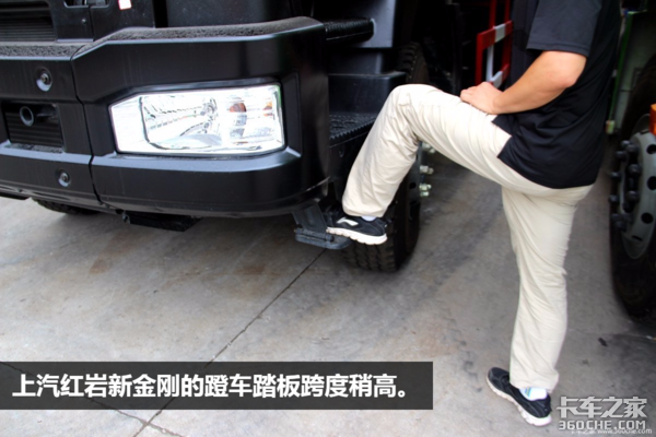 渣土车在城市使用,对于人性化方面要求较高。特别是渣土车采用的高位保险杠,导致最低一级踏板离地较高。我们在上下徐工渣土车时,明显有“扯蛋”的感觉。