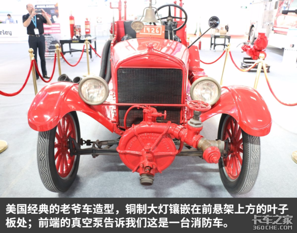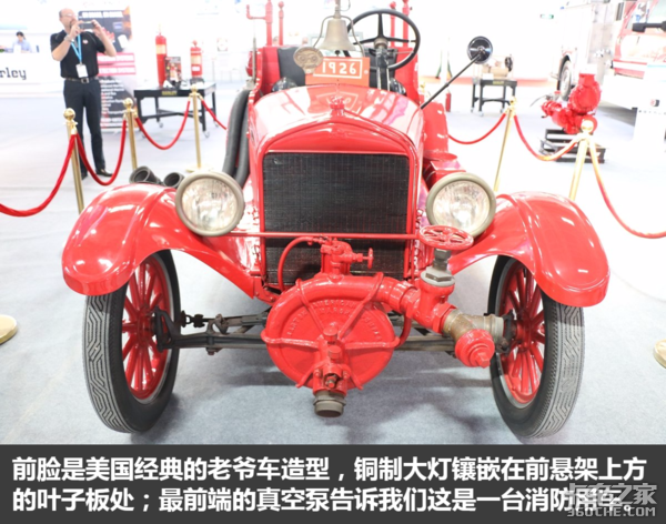 在现代化气息十足的消防设备中,美国大力公司独树一帜地展出了几辆上世纪的消防车,其中年纪最大的当属产自1926年的福特T型消防车。话不多说,我们一起来看看这台近百岁的老爷消防车的风采。