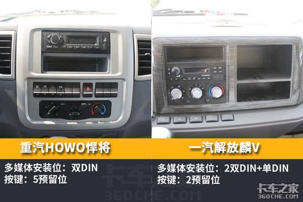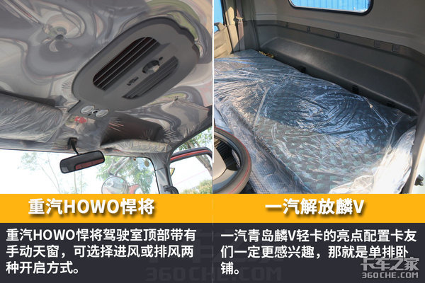 作为重载轻卡圈里的先驱,HOWO悍将的配置及做工可圈可点;解放麟V作为后起之秀,但提供了更扎实的底盘和单排卧铺这样的人性化配置,卡友们更喜欢哪一款呢?(文/图 李岩)