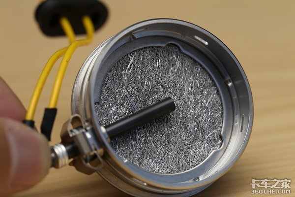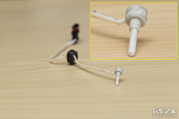 散热鳍片中间的这个小装置是温度传感器,它的作用是感知发热体的温度,并将数据传回电脑控制盒。当温度超过限制值的时候,电脑会控制油泵降低或停止燃油供应,防止发生危险。