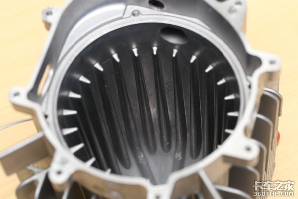 进风口的后方是出风口,可以看到内部的金属发热体。空气从炽热的发热体表面流过,并将热量带出,最终热空气被吹到驾驶室内,实现加热的效果。