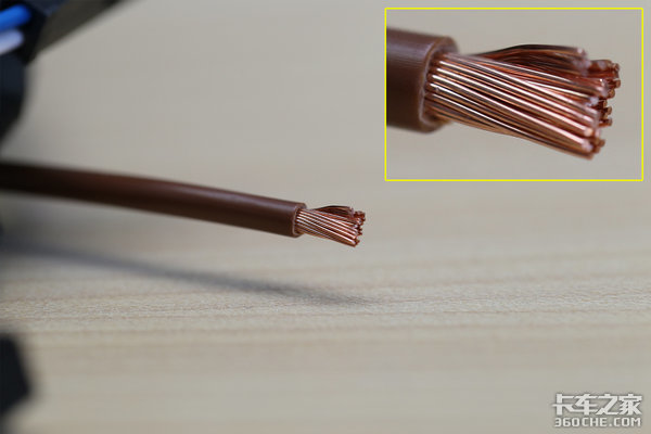 这根线缆是加热器的负极,用料非常足,内部的铜材粗细均匀,色泽光亮,国内一些小厂的产品完全无法与之相比。