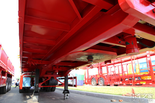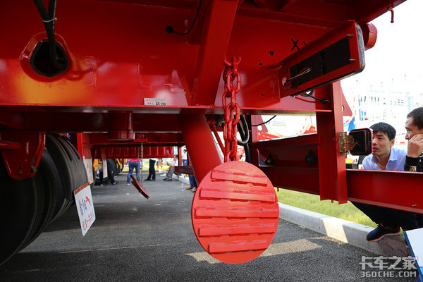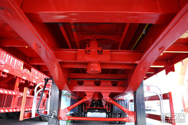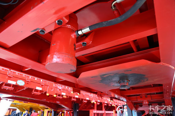 最后,来吐槽一点。既然是挂车,那么它可能会在多台的牵引车之间来回切换。但实际上,最前面的液压油缸高度要高于后面的牵引销,让接驳挂车变得不是那么太方便。