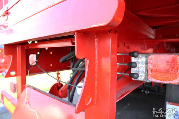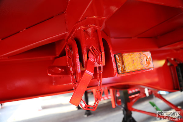 通过这种方式卸砂石或者煤炭的时候,车辆容易被陷在沙堆或煤堆里面“难以自拔”,挂车尾部的支腿可以帮助挂车脱困,这也是伟大劳动人民的智慧结晶。