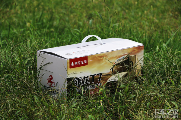 我们拿到的乘龙T7车模比例为1:24,这也是卡车厂家惯用的车模比例,用来展示细节和摆放,大小刚好。包装盒的前后两面,印刷了车型名称、车型定位的细分市场以及车型亮点;侧面和上面,印刷了柳汽官方微信公众号的二维码以及厂商信息等,这也是厂家对自己的一种宣传。